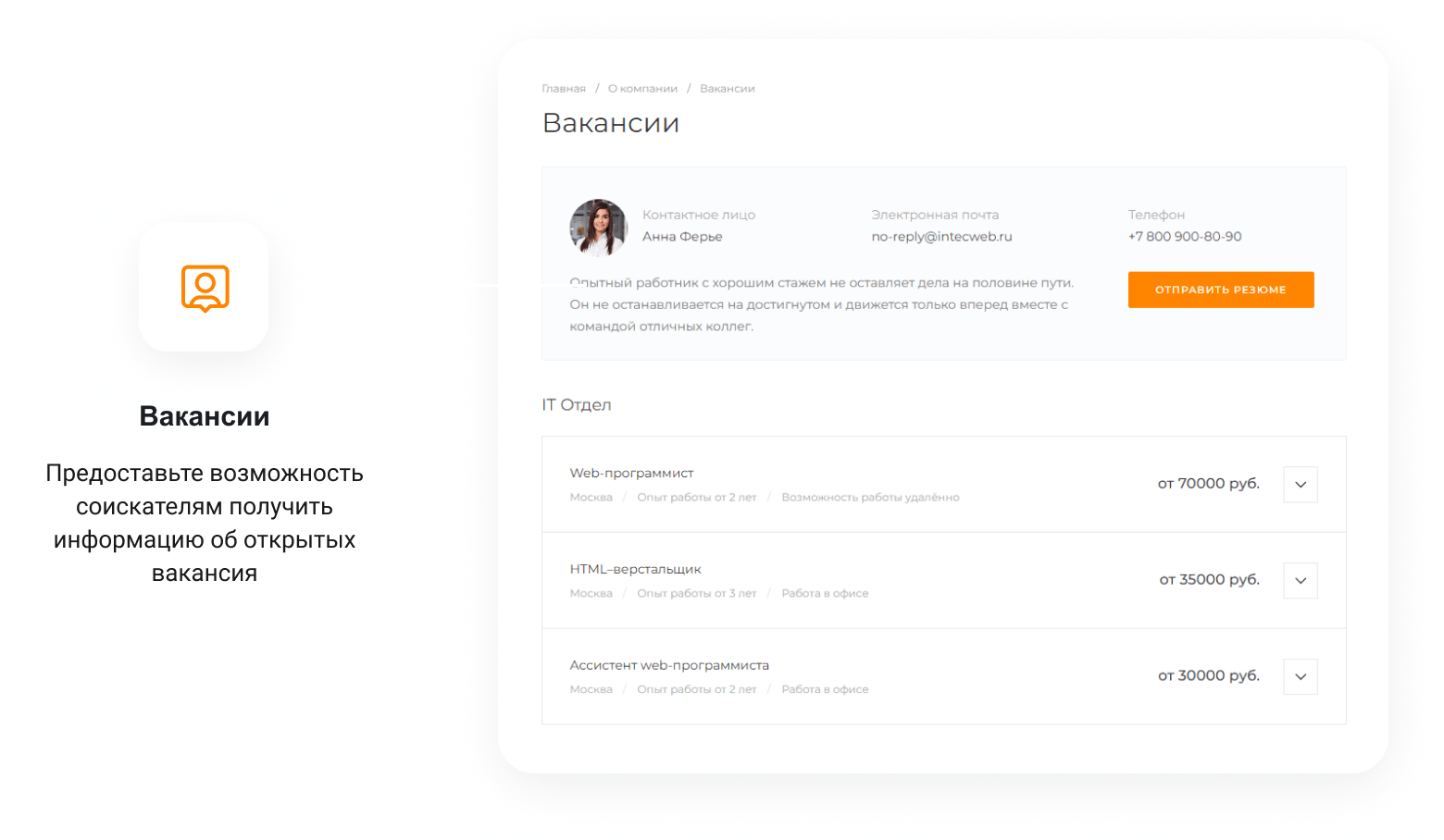 - Подключение ваших контактных данных для вывода на сайте