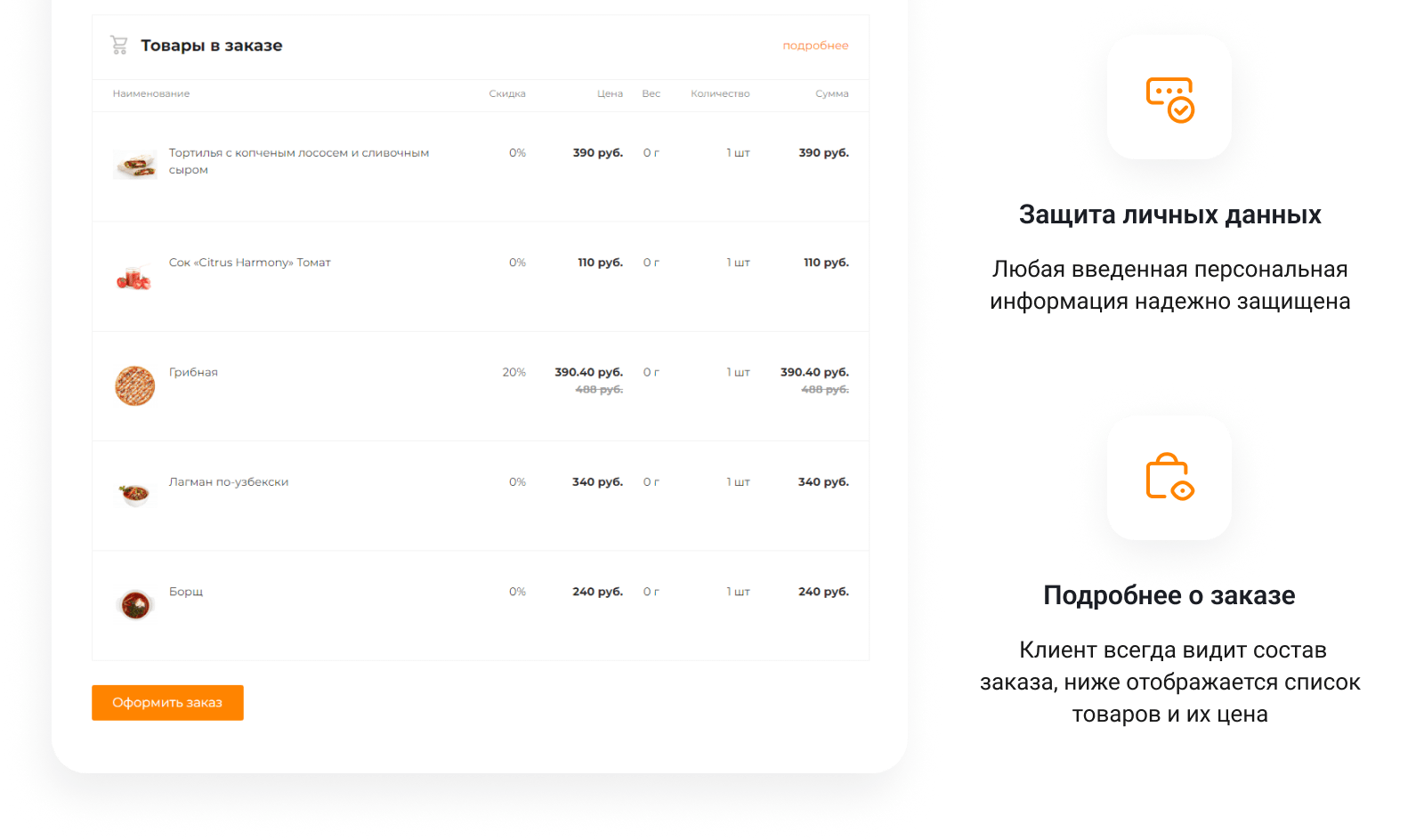 для удобного оформления заказов и управления каталогом блюдМагазины по продаже продуктов питания