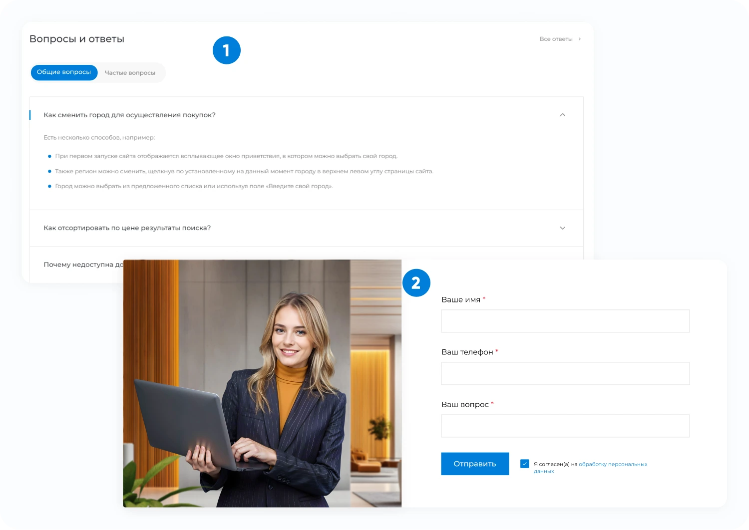 - Перейти в карточку товара и нажать «Купить в один клик». После нажатия нужно заполнить форму и отправить заявку. С вами свяжется менеджер для дальнейшего обсуждения.