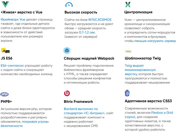 INTEC.Kosmos Site – готовый корпоративный сайт на «1С-Битрикс» со встроенным искусственным интеллектом.