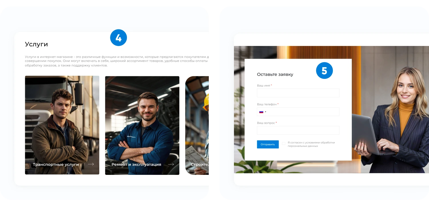 - Подключение ваших контактных данных для вывода на сайте