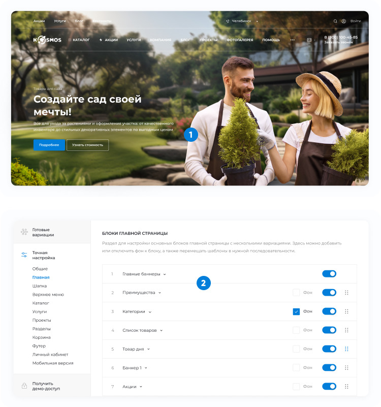 - Проработка структуры сайта: подключим актуальные разделы, отключим ненужные