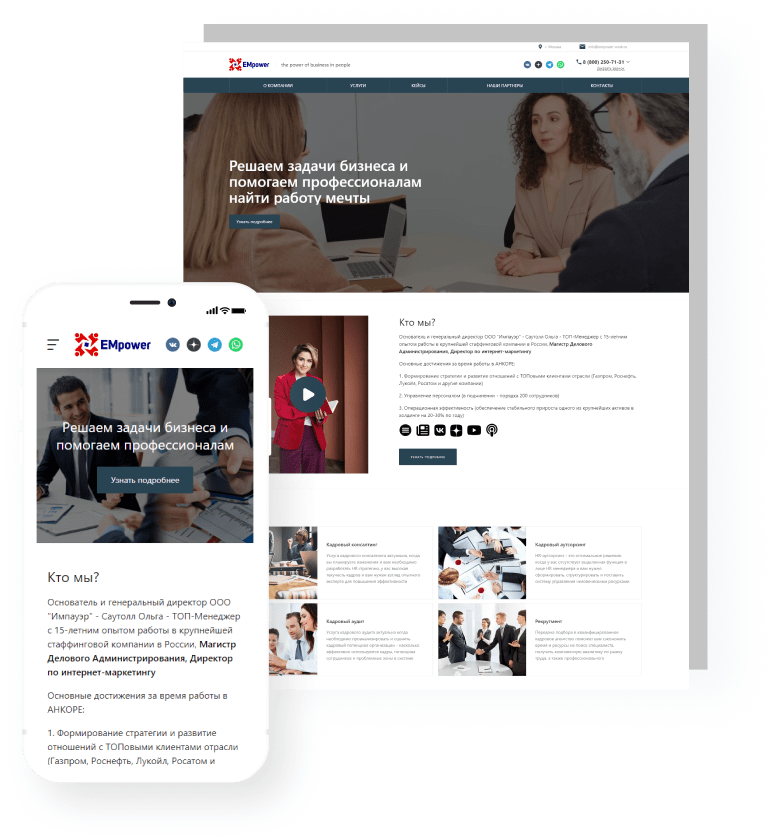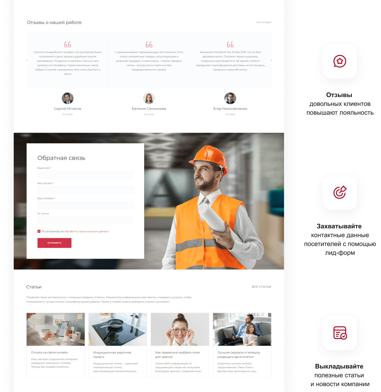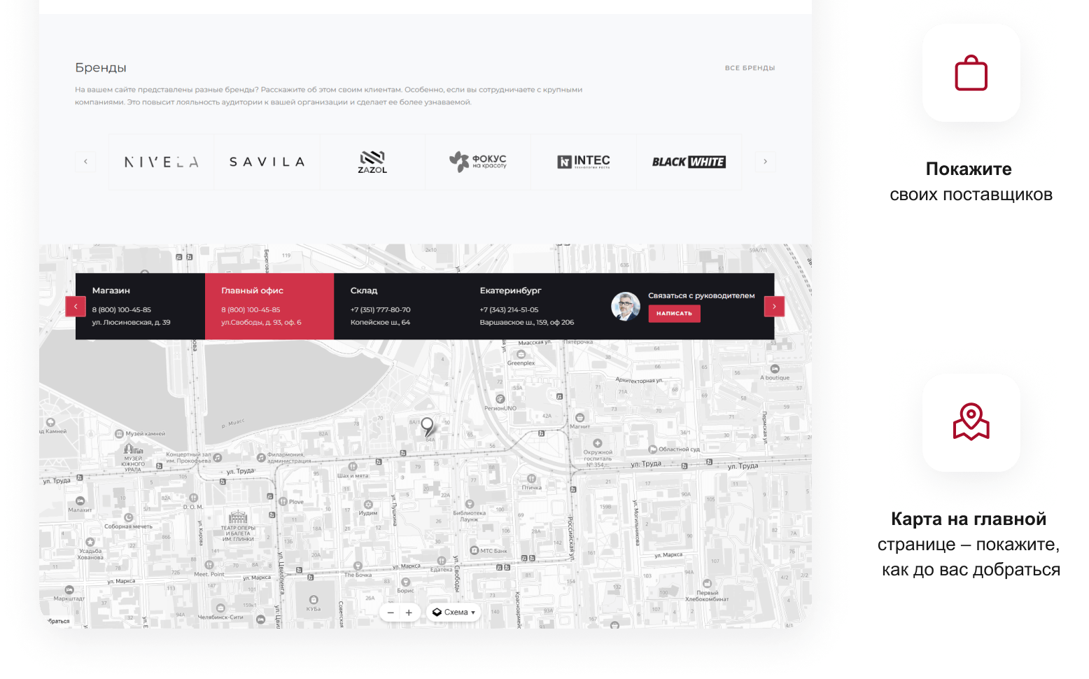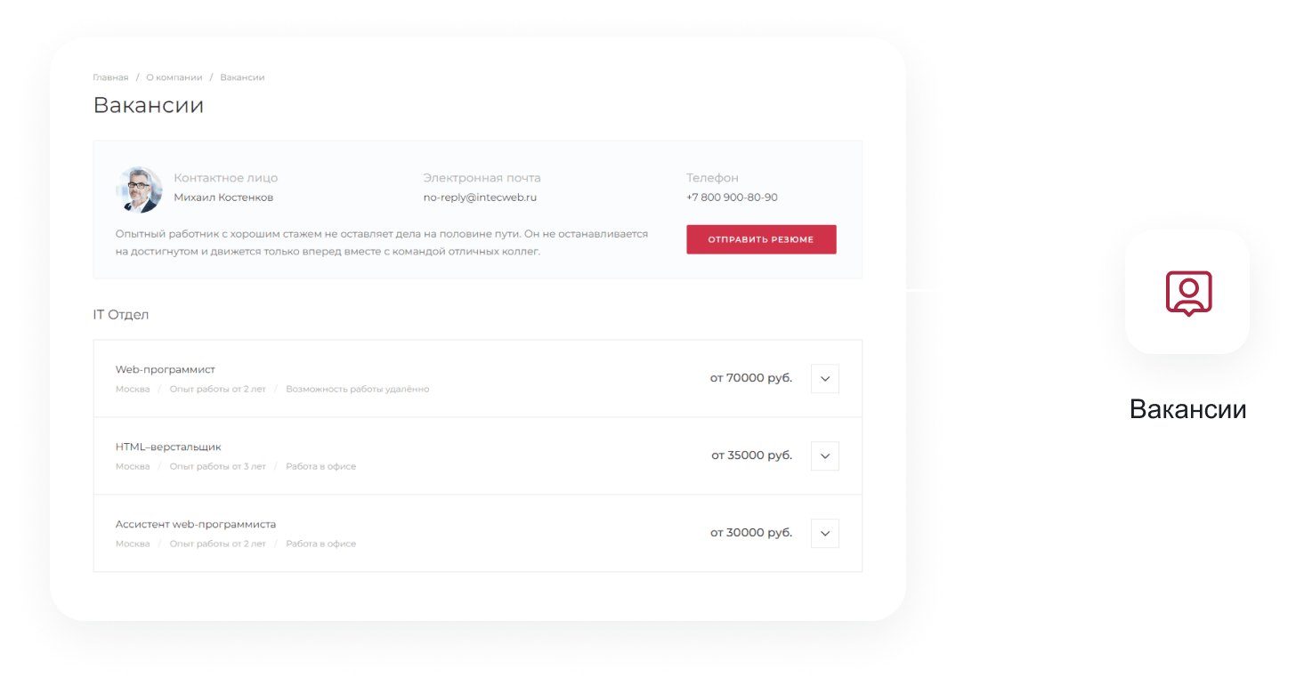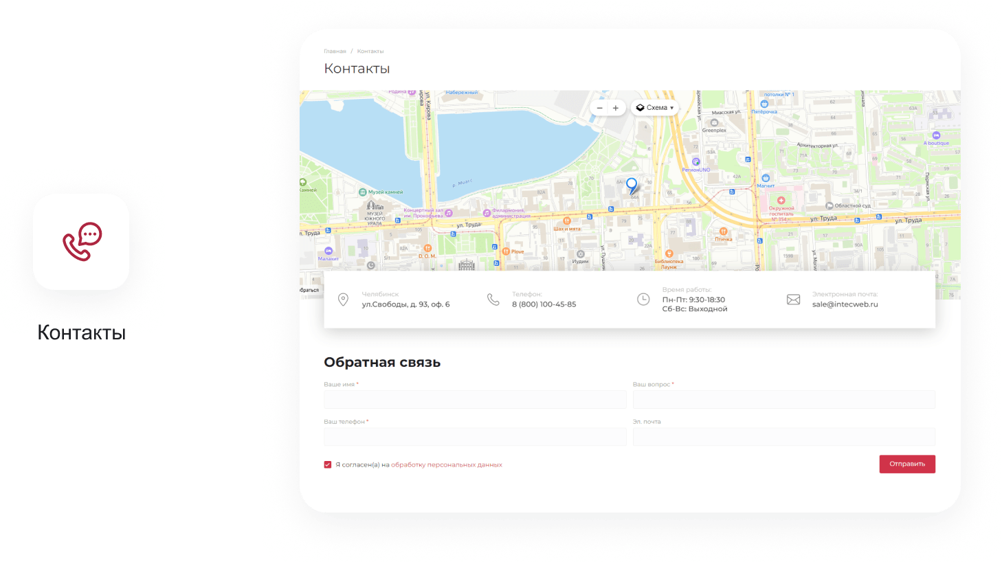 - Подключение ваших контактных данных для вывода на сайте