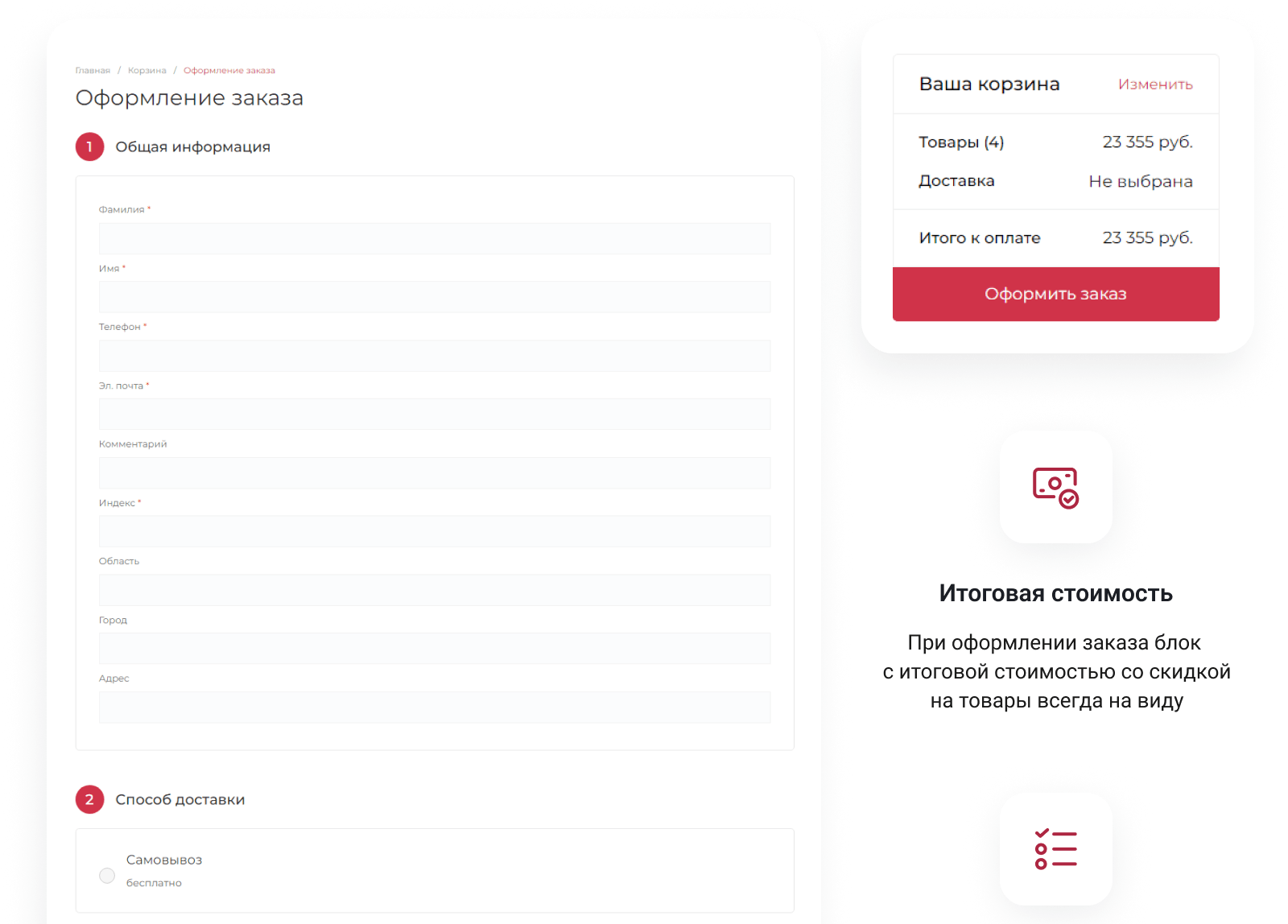 - Выбрать понравившийся товар и нажать кнопку «В корзину». Затем перейти в корзину и нажать «Оформить заказ». Далее заполнить форму с контактными данными и отправить заявку. С вами свяжется менеджер для дальнейшего обсуждения.