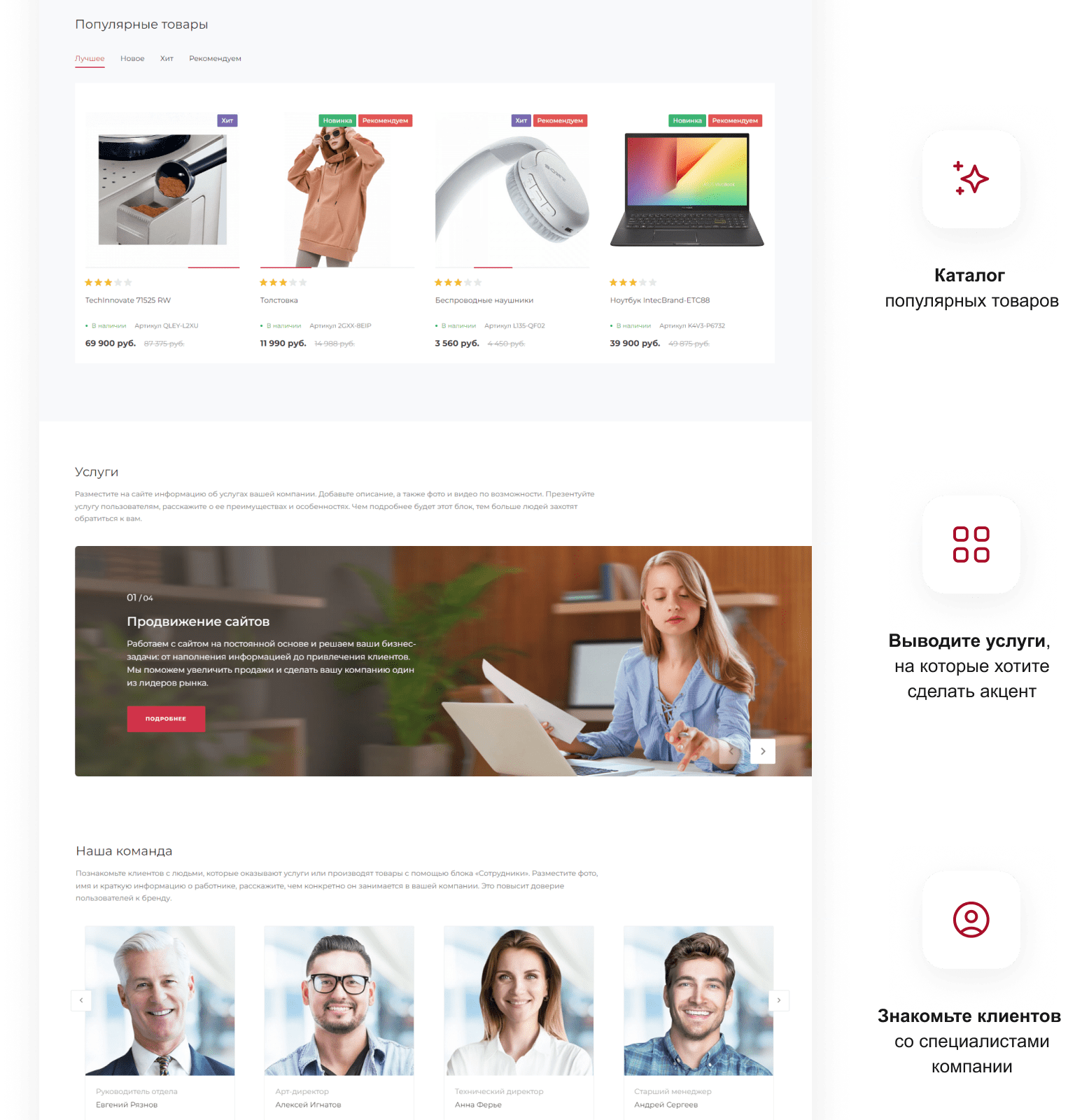 - Проработка структуры сайта: подключим актуальные разделы, отключим ненужные