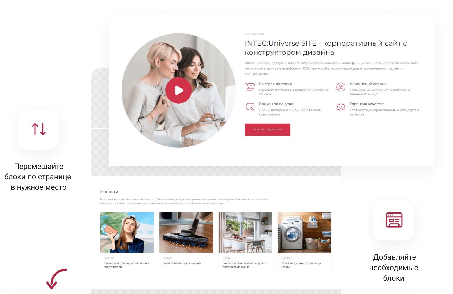 Решение идеально подойдет для быстрого запуска современного и многофункционального корпоративного сайта, интернет-магазина на платформе «1С-Битрикс», без лишних расходов и привлечения сторонних специалистов. Для корректной работы решения вам понадобится установить бесплатный модуль INTEC:Ядро (базовый модуль для решений INTEC).