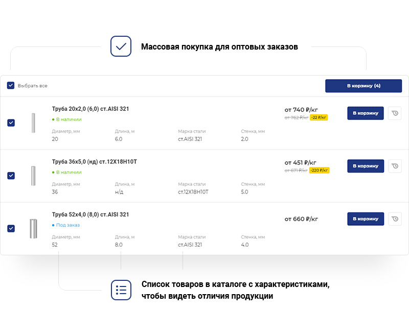 - Выбрать понравившийся товар и нажать кнопку «В корзину». Затем перейти в корзину и нажать «Оформить заказ». Далее заполнить форму с контактными данными и отправить заявку. С вами свяжется менеджер для дальнейшего обсуждения.