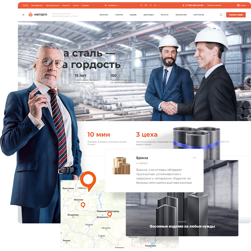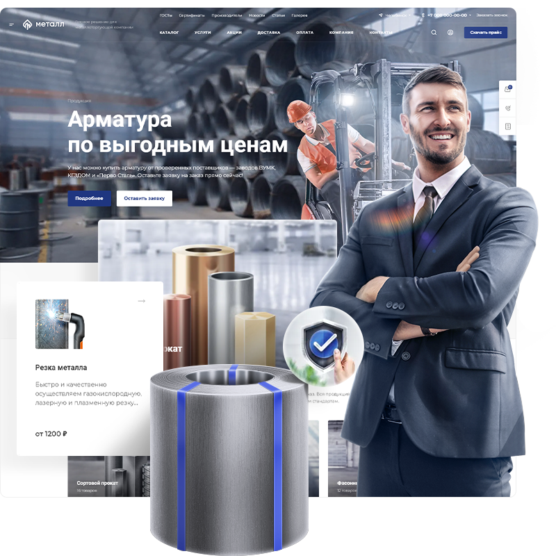 Готовый сайт под ключ за 10 дней на 1С-Битрикс на платформе "Аспро: Металл". Установка, настройка, готовое решение, лицензия, хостинг - все включено!