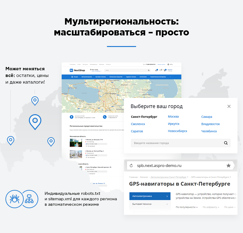 Аспро: Next – это универсальный интернет-магазин для товаров любой тематики с полноценной мультирегиональностью и посадочными страницами в каталоге, обзорах и поиске. Создан с учетом особых потребностей проектов, которые планируют развиваться и масштабироваться. Используйте безграничные возможности, чтобы создать свой уникальный интернет-магазин на основе готового решения!