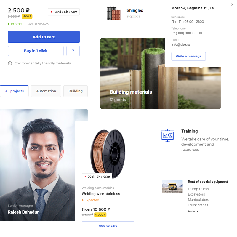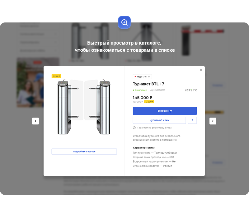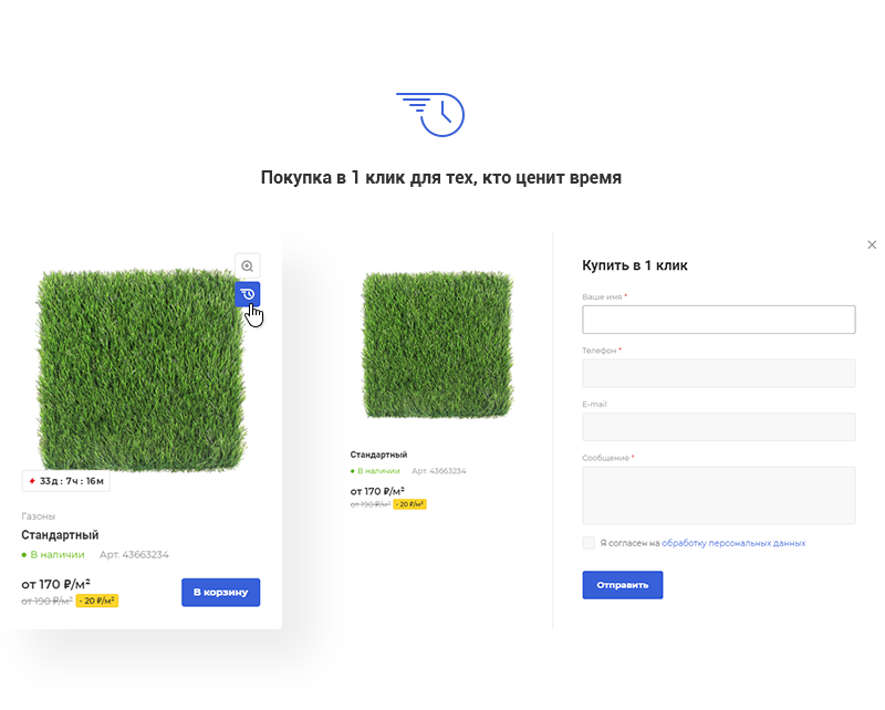 - Перейти в карточку товара и нажать «Купить в один клик». После нажатия нужно заполнить форму и отправить заявку. С вами свяжется менеджер для дальнейшего обсуждения.