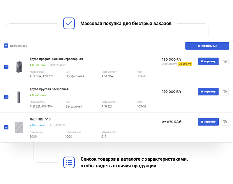 - Выбрать понравившийся товар и нажать кнопку «В корзину». Затем перейти в корзину и нажать «Оформить заказ». Далее заполнить форму с контактными данными и отправить заявку. С вами свяжется менеджер для дальнейшего обсуждения.