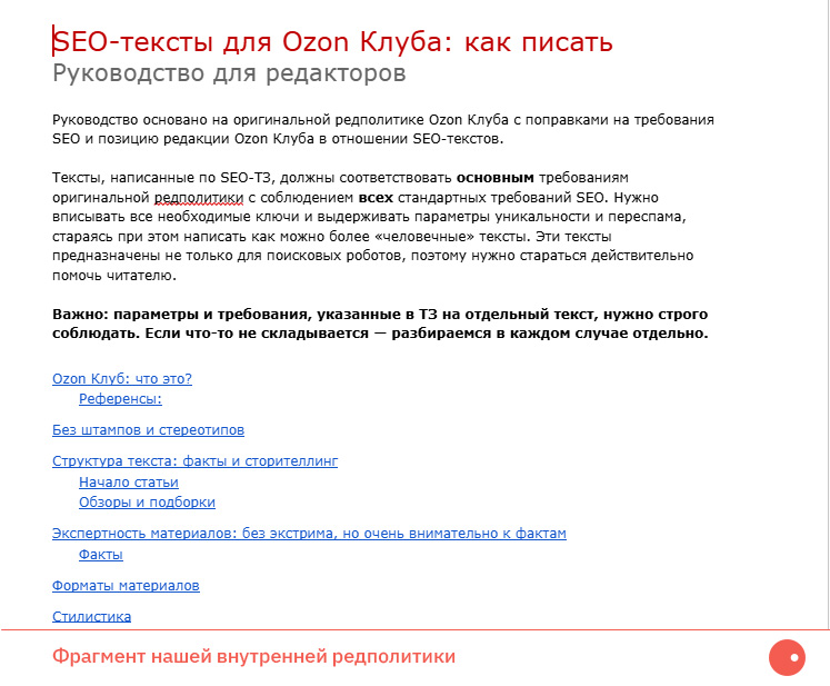 Работали в двух направлениях: SEO-тексты для теговых страниц/категорий и тексты для блога Ozon Club.
