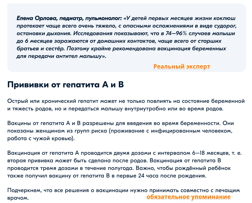 Как и для других текстов, работали только при участии медиков-экспертов. В структуру текстов включали обязательные блоки: симптомы, причины, течение, лечение.