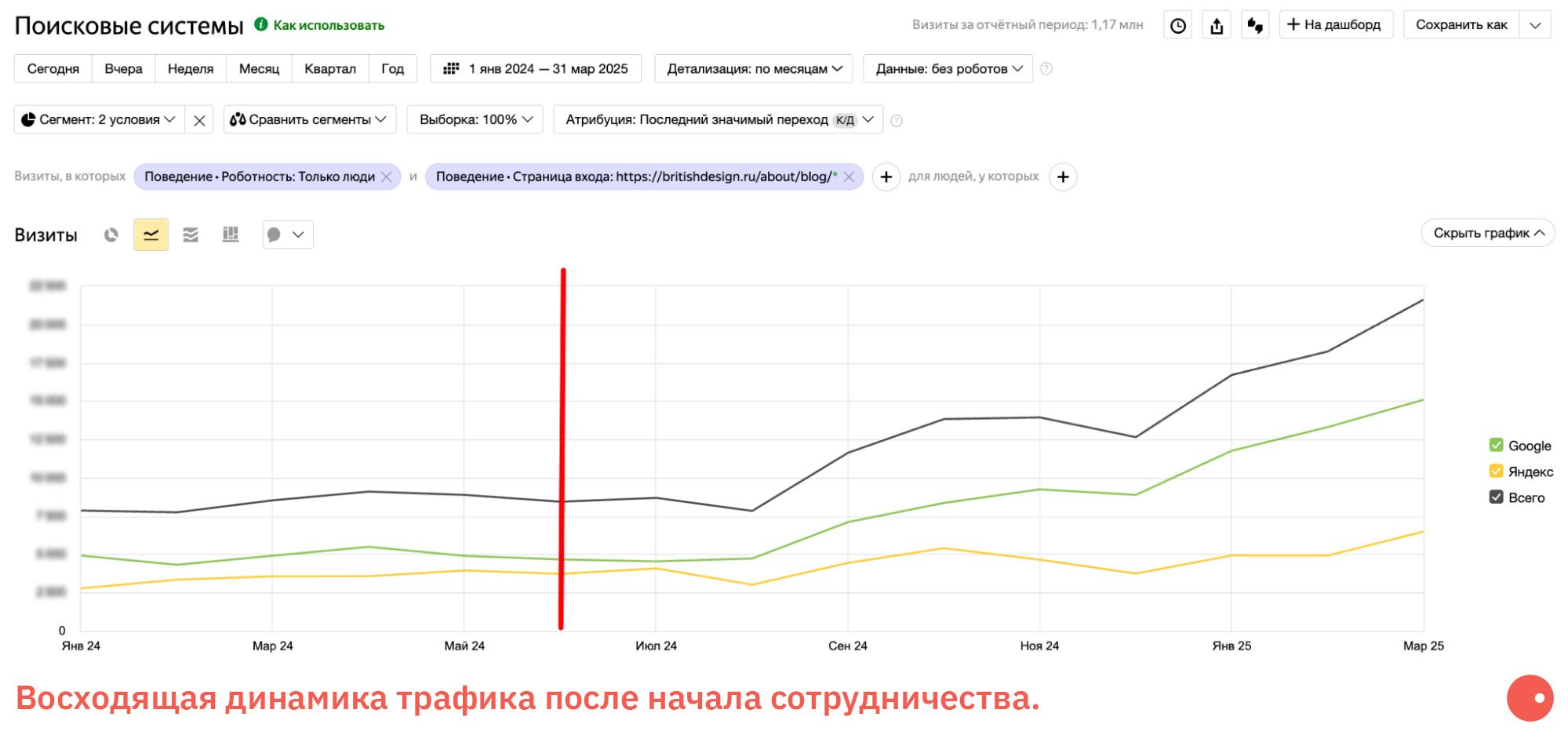 - Общий трафик на сайт БВШД вырос на 20%, поисковый трафик на статьи в блоге увеличился в 2,7 раза.