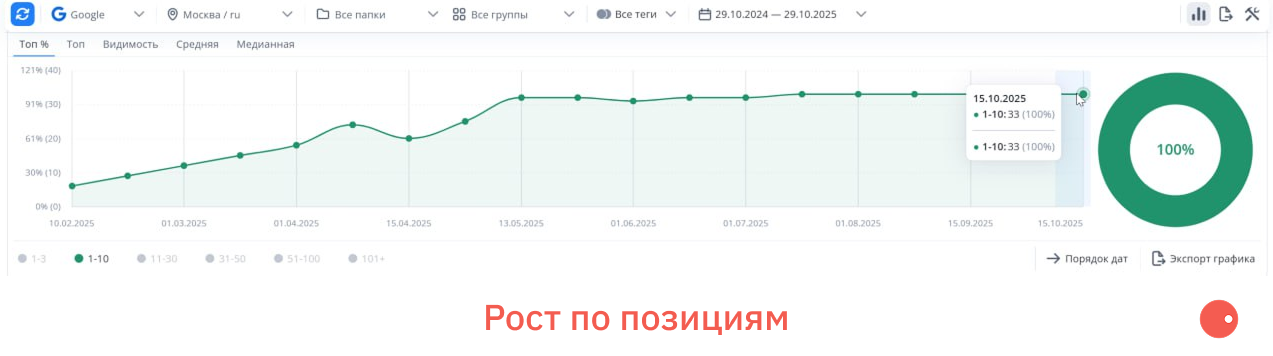 Команда SEO отвечала за семантику, техническую оптимизацию и рекомендации для роста позиций: